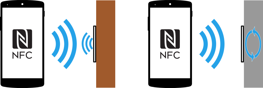 Communication with a tag on a non-conductive (left) vs. conductive (right) surface.